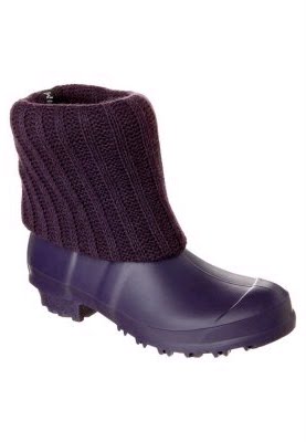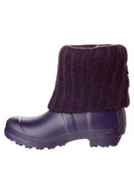 jumping through puddles - the purple rubber ankle boots by Murphy & Nye! This boot has a distinctive profile that gives you grip on any surface. The stock is turned over and in a halter-style, so the rubber ankle boot gets a trendy touch and can be worn normally in everyday life. At the back of the heel is the label attached and thus points to the producer. The purple rubber ankle boots by Murphy & Nye - Enthusiasm for rainy days!